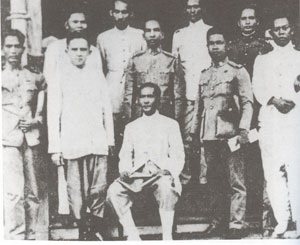 สมาคมคณะราฎร สมาคมที่ดำเนินงานทางการเมืองตามวัตถุประสงค์ของคณะราษฎร หรือพรรคการเมืองพรรคแรกของไทย ในภาพ กรรมการสมาคมคณะราษฎร พระยานิติศาสตร์ไทศาลย์ นายกสมาคม(นั่ง)แถวยืนจากซ้าย : ร.ท.วัน รุยาพร ร.น.ประยูร ภมรมนตรี ร.ต.อ.หลวงอภิบาลเขตต์นคร ร.อ.หลวงเชวงศักด